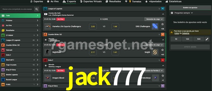 O jack777 oferece uma grande seleção de opções de apostas em e-sports com probabilidades competitivas